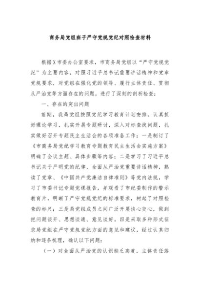 / 【七哥公文】2024年:商务局党组班子严守党规党纪对照检查材料+更多免费公文+VX:QiGeGongWen2024