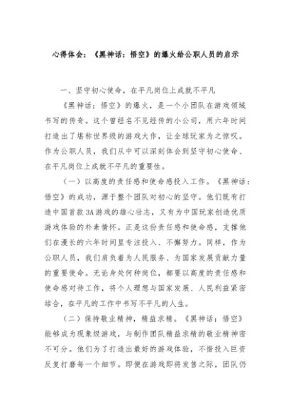 / 【七哥公文】2024年:心得体会:《黑神话:悟空》的爆火给公职人员的启示+更多免费公文+VX:QiGeGongWen2024