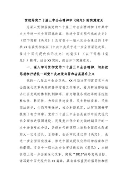 【七哥公文】2024年:贯彻落实二十届三中全会精神和《决定》的实施意见,更多免费公文资料,+VX:QiGeGongWen2024+更多免费公文+VX:QiGeGongWen2024