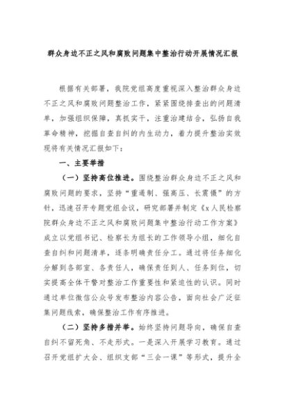 【七哥公文】2024年:群众身边不正之风和腐败问题集中整治行动开展情况汇报+更多免费公文+VX:QiGeGongWen2024