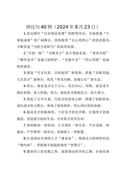 / 【七哥公文】2024年:排比句40例2024年8月23日+更多免费公文+VX:QiGeGongWen2024