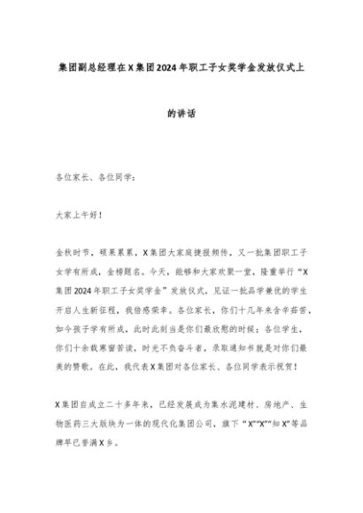 【七哥公文】2024年:集团副总经理在X集团2024年职工子女奖学金发放仪式上的讲话,更多免费公文资料,+VX:QiGeGongWen2024+更多免费公文+VX:QiGeGongWen2024