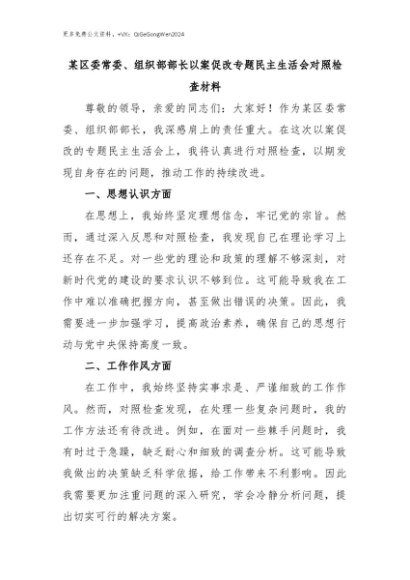 【七哥公文】2024年:某区委常委、组织部部长以案促改专题民主生活会对照检查材料+更多免费公文+VX:QiGeGongWen2024