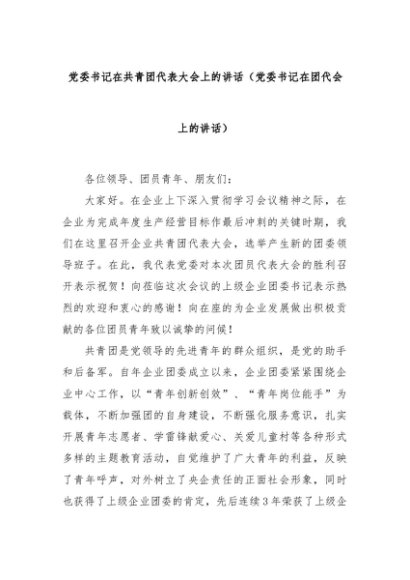【七哥公文】2024年:党委书记在共青团代表大会上的讲话(党委书记在团代会上的讲话),更多免费公文资料,+VX:QiGeGongWen2024+更多免费公文+VX:QiGeGongWen2024