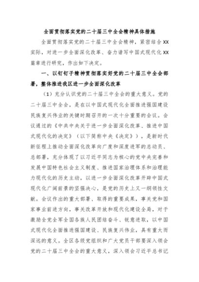/ 【七哥公文】2024年:全面贯彻落实党的二十届三中全会精神具体措施+更多免费公文+VX:QiGeGongWen2024