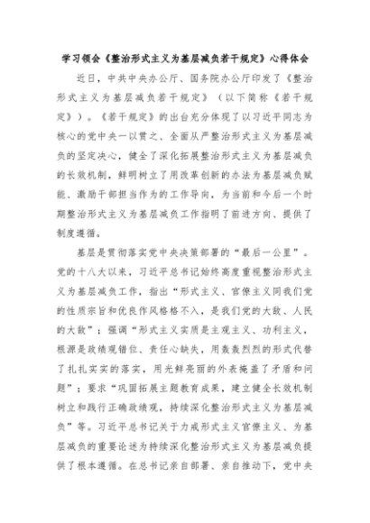 【七哥公文】2024年:学习领会《整治形式主义为基层减负若干规定》心得体会+更多免费公文+VX:QiGeGongWen2024