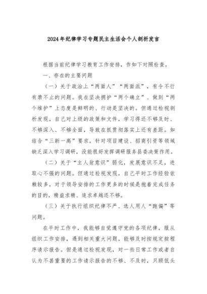/ 【七哥公文】2024年:2024年纪律学习专题民主生活会个人剖析发言+更多免费公文+VX:QiGeGongWen2024