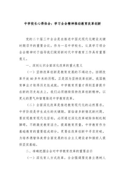 / 【七哥公文】2024年:中学校长心得体会:学习全会精神推动教育改革创新+更多免费公文+VX:QiGeGongWen2024