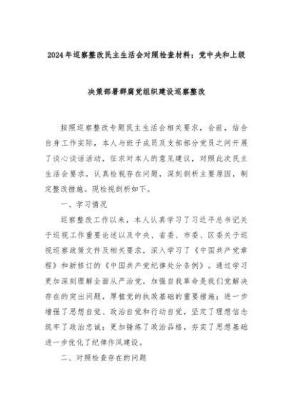 【七哥公文】2024年:2024年巡察整改民主生活会对照检查材料:党中央和上级决策部署群腐党组织建设巡察整改,更多免费公文资料,+VX:QiGeGongWen2024+更多免费公文+VX:QiGeGongWen2024