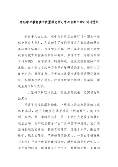 【七哥公文】2024年:党纪学习教育读书班暨理论学习中心组集中学习研讨提纲,更多免费公文资料,+VX:QiGeGongWen2024+更多免费公文+VX:QiGeGongWen2024