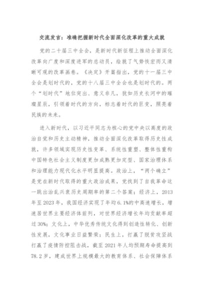 【七哥公文】2024年:交流发言:准确把握新时代全面深化改革的重大成就,更多免费公文资料,+VX:QiGeGongWen2024+更多免费公文+VX:QiGeGongWen2024