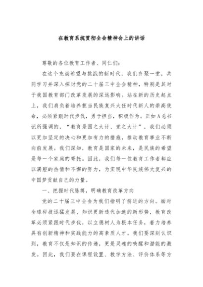 / 【七哥公文】2024年:在教育系统贯彻全会精神会上的讲话+更多免费公文+VX:QiGeGongWen2024