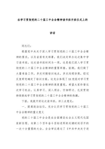 【七哥公文】2024年:在学习贯彻党的二十届三中全会精神读书班开班仪式上的讲话+更多免费公文+VX:QiGeGongWen2024