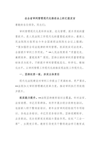 / 【七哥公文】2024年:在全省审判管理现代化推进会上的汇报发言+更多免费公文+VX:QiGeGongWen2024