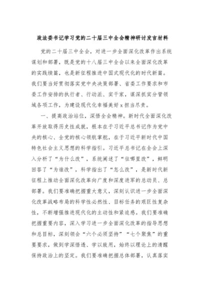 / 【七哥公文】2024年:政法委书记学习党的二十届三中全会精神研讨发言材料+更多免费公文+VX:QiGeGongWen2024