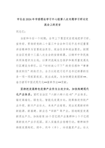 【七哥公文】2024年:市长在2024年市委理论学习中心组第八次专题学习研讨交流会上的发言+更多免费公文+VX:QiGeGongWen2024