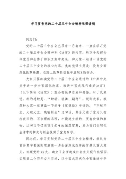/ 【七哥公文】2024年:学习贯彻党的二十届三中全会精神党课讲稿+更多免费公文+VX:QiGeGongWen2024
