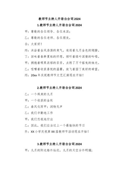 / 【七哥公文】2024年:教师节主持人开场白台词2024+更多免费公文+VX:QiGeGongWen2024