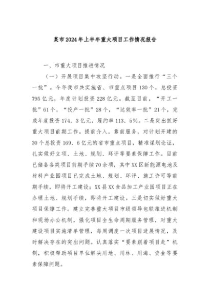 / 【七哥公文】2024年:某市2024年上半年重大项目工作情况报告+更多免费公文+VX:QiGeGongWen2024