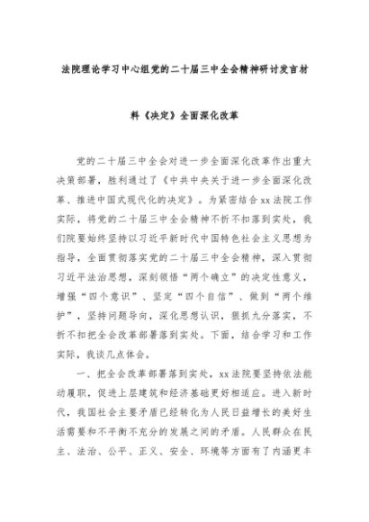 【七哥公文】2024年:法院理论学习中心组党的二十届三中全会精神研讨发言材料《决定》全面深化改革+更多免费公文+VX:QiGeGongWen2024