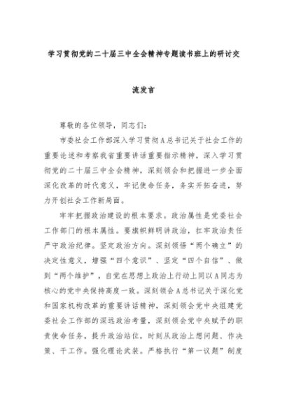 【七哥公文】2024年:学习贯彻党的二十届三中全会精神专题读书班上的研讨交流发言+更多免费公文+VX:QiGeGongWen2024