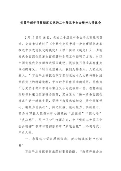 【七哥公文】2024年:党员干部学习贯彻落实党的二十届三中全会精神心得体会+更多免费公文+VX:QiGeGongWen2024