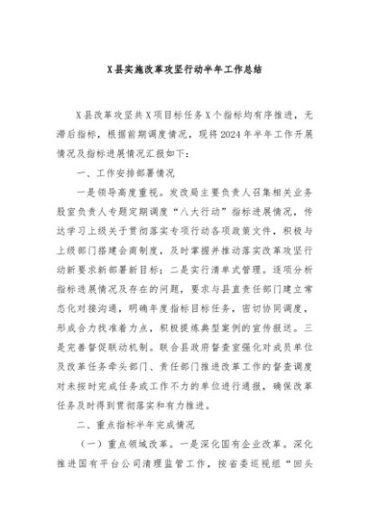 / 【七哥公文】2024年:X县实施改革攻坚行动半年工作总结+更多免费公文+VX:QiGeGongWen2024