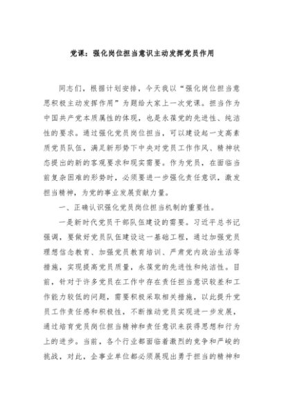 / 【七哥公文】2024年:党课:强化岗位担当意识主动发挥党员作用+更多免费公文+VX:QiGeGongWen2024