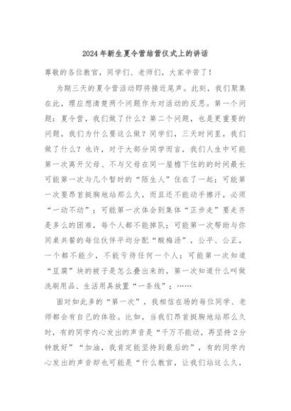 【七哥公文】2024年:2024年新生夏令营结营仪式上的讲话+更多免费公文+VX:QiGeGongWen2024
