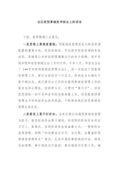 / 【七哥公文】2024年:在区级预算绩效审核会上的讲话+更多免费公文+VX:QiGeGongWen2024