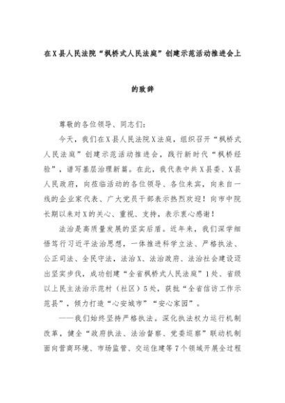 【七哥公文】2024年:在X县人民法院“枫桥式人民法庭”创建示范活动推进会上的致辞+更多免费公文+VX:QiGeGongWen2024