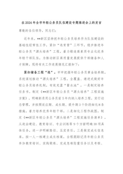 【七哥公文】2024年:在2024年全市年轻公务员队伍建设专题推进会上的发言+更多免费公文+VX:QiGeGongWen2024