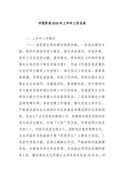 / 【七哥公文】2024年:市国资委2024年上半年工作总结+更多免费公文+VX:QiGeGongWen2024
