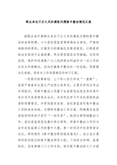/ 【七哥公文】2024年:群众身边不正之风和腐败问题集中整治情况汇报+更多免费公文+VX:QiGeGongWen2024