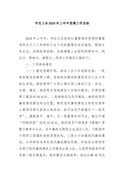 / 【七哥公文】2024年:市总工会2024年上半年党建工作总结+更多免费公文+VX:QiGeGongWen2024