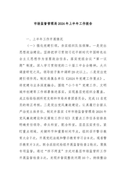 / 【七哥公文】2024年:市场监督管理局2024年上半年工作报告+更多免费公文+VX:QiGeGongWen2024