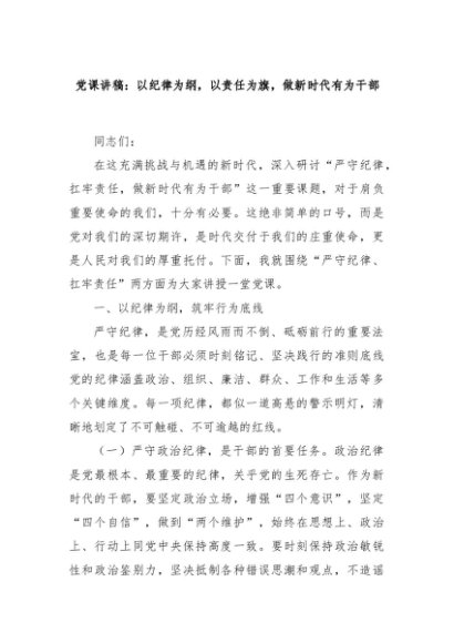 【七哥公文】2024年:党课讲稿:以纪律为纲,以责任为旗,做新时代有为干部+更多免费公文+VX:QiGeGongWen2024