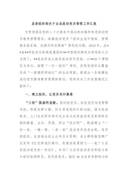 / 【七哥公文】2024年:县委组织部关于全县流动党员管理工作汇报+更多免费公文+VX:QiGeGongWen2024