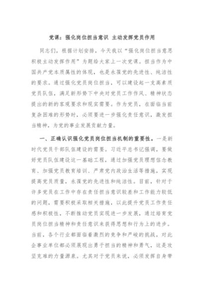 / 【七哥公文】2024年:党课:强化岗位担当意识 主动发挥党员作用+更多免费公文+VX:QiGeGongWen2024