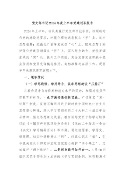 / 【七哥公文】2024年:党支部书记2024年度上半年党建述职报告+更多免费公文+VX:QiGeGongWen2024