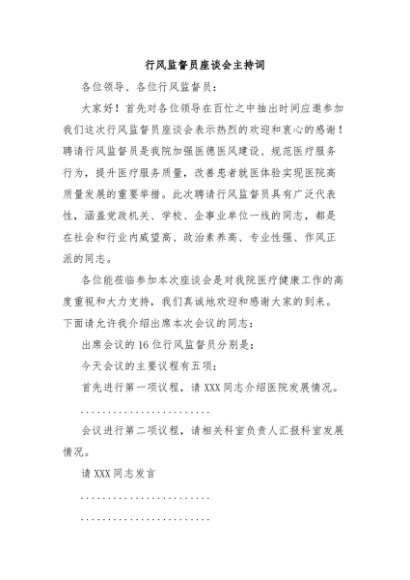 / 【七哥公文】2024年:行风监督员座谈会主持词+更多免费公文+VX:QiGeGongWen2024