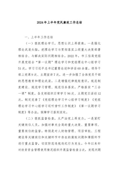 / 【七哥公文】2024年:2024年上半年党风廉政工作总结+更多免费公文+VX:QiGeGongWen2024