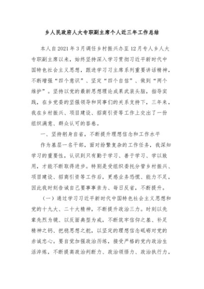 / 【七哥公文】2024年:乡人民政府人大专职副主席个人近三年工作总结+更多免费公文+VX:QiGeGongWen2024