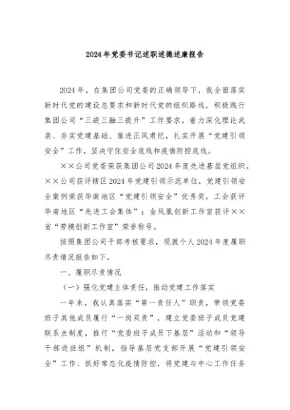 / 【七哥公文】2024年:2024年党委书记述职述德述廉报告+更多免费公文+VX:QiGeGongWen2024