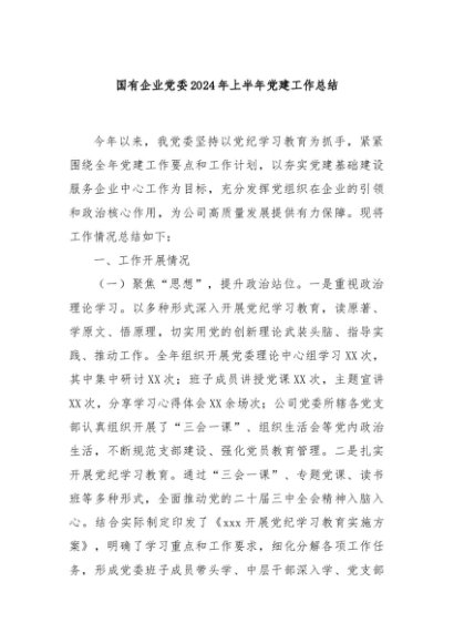 / 【七哥公文】2024年:国有企业党委2024年上半年党建工作总结+更多免费公文+VX:QiGeGongWen2024