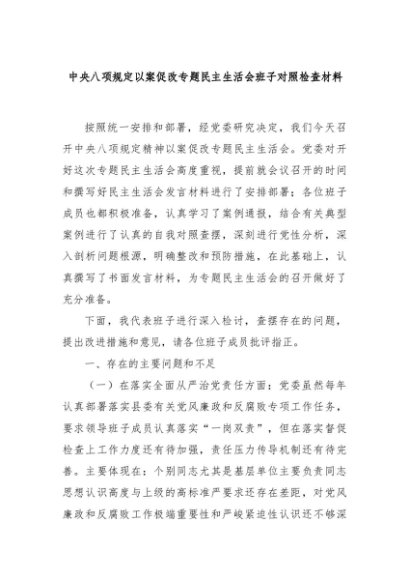 【七哥公文】2024年:中央八项规定以案促改专题民主生活会班子对照检查材料+更多免费公文+VX:QiGeGongWen2024