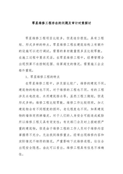 / 【七哥公文】2024年:零星维修工程存在的问题及审计对策探讨+更多免费公文+VX:QiGeGongWen2024