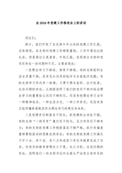 / 【七哥公文】2024年:在2024年党建工作推进会上的讲话+更多免费公文+VX:QiGeGongWen2024