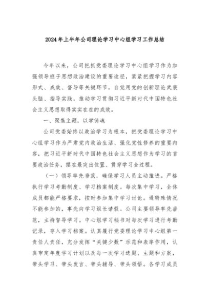 / 【七哥公文】2024年:2024年上半年公司理论学习中心组学习工作总结+更多免费公文+VX:QiGeGongWen2024