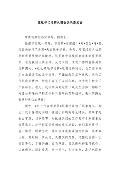 / 【七哥公文】2024年:党组书记巡察反馈会议表态发言+更多免费公文+VX:QiGeGongWen2024